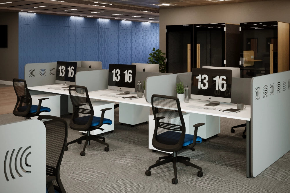 Introducing Koala Acoustic Bench Screens, a cutting-edge addition to enhance your workspace with both style and functionality. Designed to seamlessly integrate with bench desks, these screens redefine your office environment by creating personalised and adaptable workspaces. Placing them on the side of your bench desks, provides a discreet yet effective barrier, ensuring privacy and focus for each individual in shared workspaces.