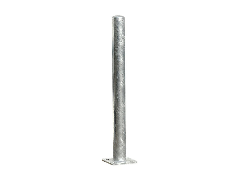 This durable steel bollard is available in three diameters (90, 114, or 160 mm) and stands 1000 mm high. Made from 3 mm gauge steel with a welded dome top, it comes in galvanised or zinc-primed finishes with black pre-applied bands. Designed for base plate installation, it can also be concreted into the ground upon request. For coastal areas, additional galvanising is recommended to enhance weather resistance. Custom RAL colours are available to match any setting.