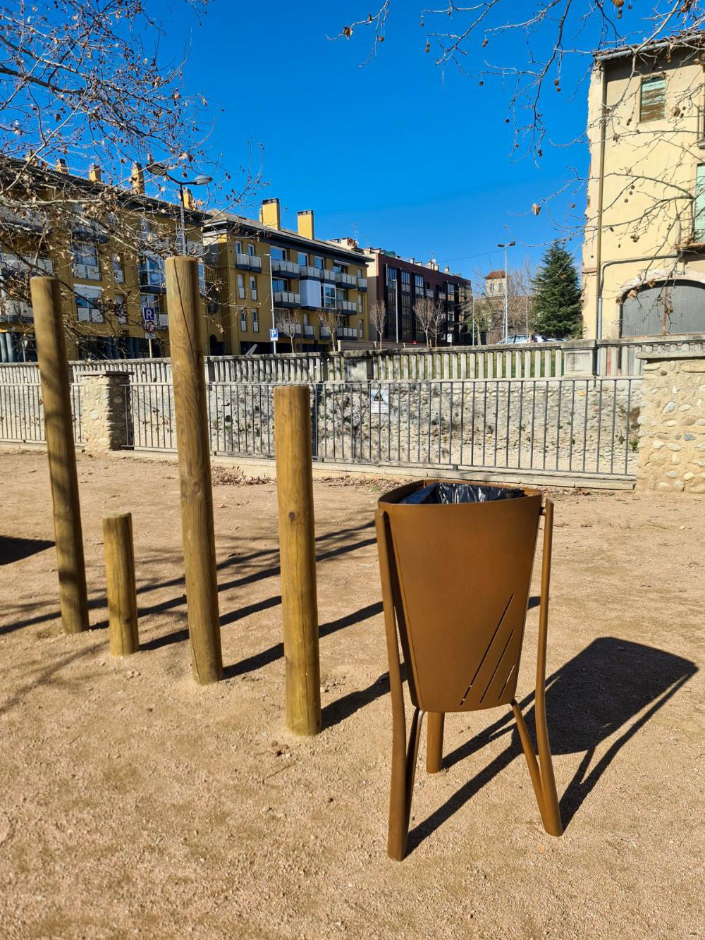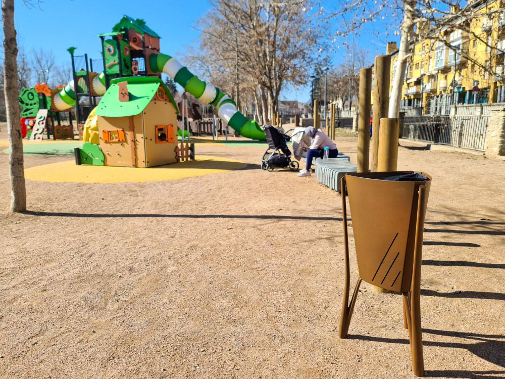 A zinc-plated steel structure and interior bin of the Minsk Outdoor Waste Bin are secured by a hinged ring. Standing atop oven-painted ductile iron feet with a twofold anti-corrosion technique, it is finished in marson with epoxy and polyester powder coatings. Easy floor installation in a range of outdoor environments is ensured by the triangular anchoring base's holes for M8 screws (not included).
