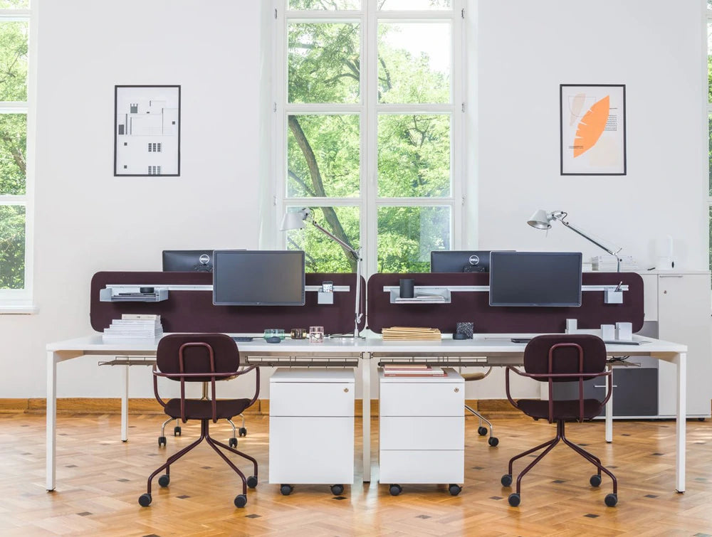 New School is a new take on the classic school chair design adapted to the varied ergonomic requirements of modern offices. Available in trestle or 4 legs metal base with optional castor wheels, armrest and headrest.