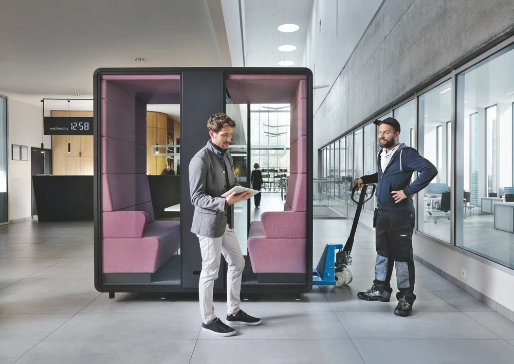 HushMeet is a large meeting booth made by conjoined modules. A team can simply add or remove these modules to expand or scale down the pod and modify their layout without creating any waste, disruption, or cost all within one workday. HushMeet meeting pod has been created for change, so it adapts by design!